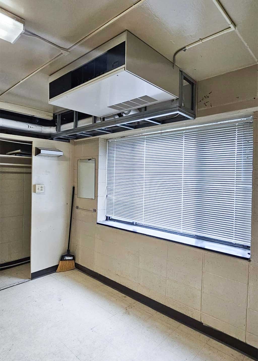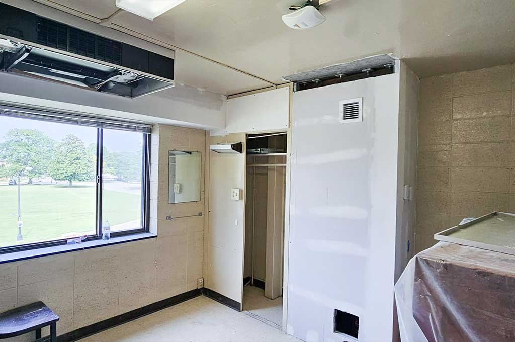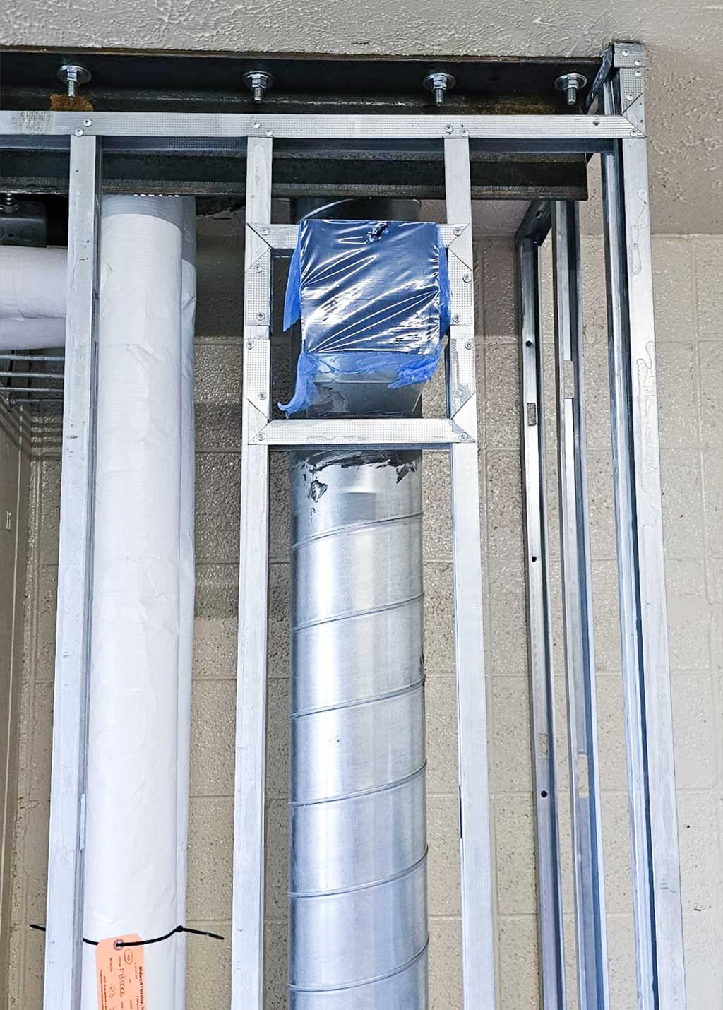 Framing work related to HVAC system installation as part of technical upgrades to the building.